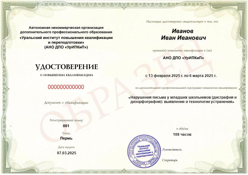- Повышали квалификацию в АНО ДПО «УрИПКиП» – вам будет выдано удостоверение.