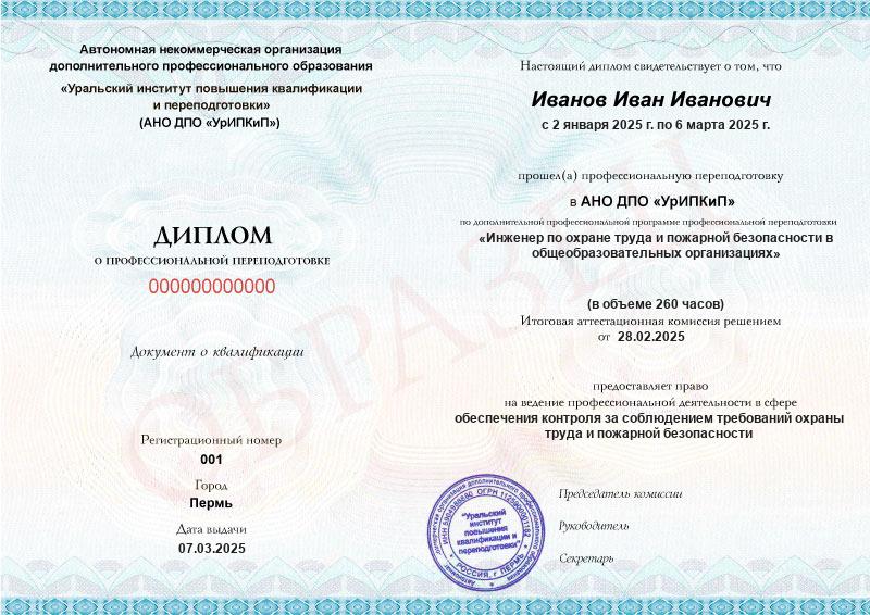Да, дипломы и удостоверения оформляются в соответствии с действующим законодательством РФ. Документы печатаются на специальных бланках, заверяются печатью АНО ДПО «УрИПКиП».