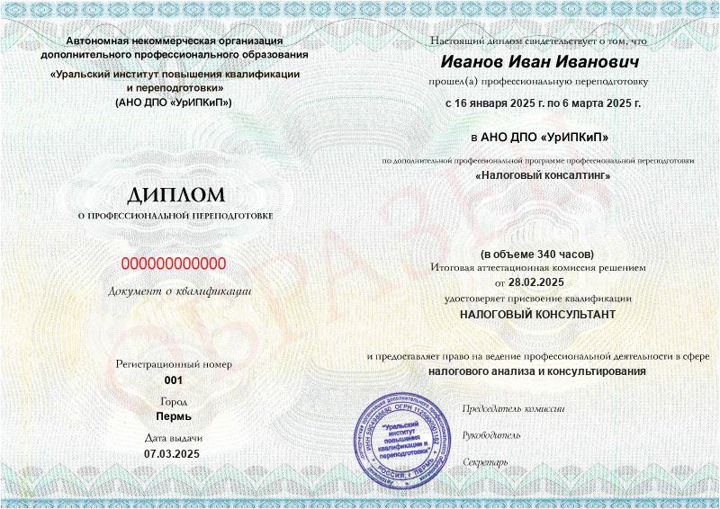 Обзор программы профессиональной переподготовки «Налоговый консалтинг» с присвоением квалификации «Налоговый консультант»