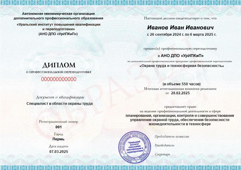 Да, дипломы и удостоверения оформляются в соответствии с действующим законодательством РФ. Документы печатаются на специальных бланках, заверяются печатью АНО ДПО «УрИПКиП».