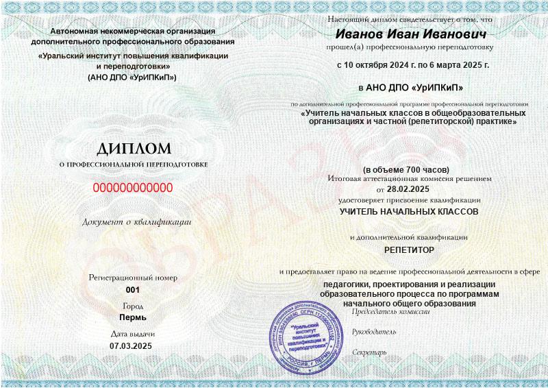 - Образец диплома о профессиональной переподготовке.