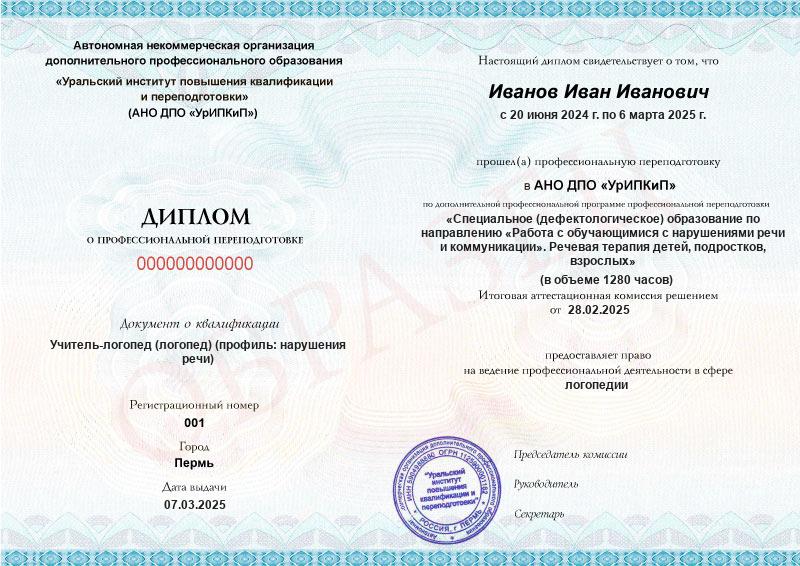 Да, дипломы и удостоверения оформляются в соответствии с действующим законодательством РФ. Документы печатаются на специальных бланках, заверяются печатью АНО ДПО «УрИПКиП».